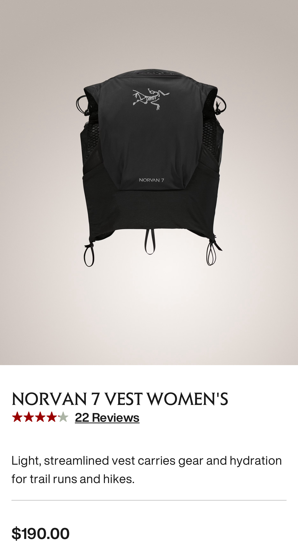 | Arc'teryx Norvan 7 | 205g (M) | 7L | ✔ | ⭐⭐⭐⭐⭐ | $190 |