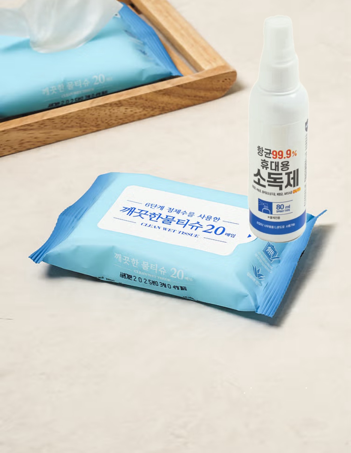 🧴 휴대용 물티슈 + 손소독 티슈