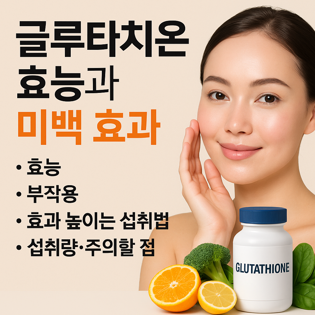글루타치온은 피부 미백 + 항산화 + 간 해독까지 다방면에서 도움이 되는 영양소입니다.
